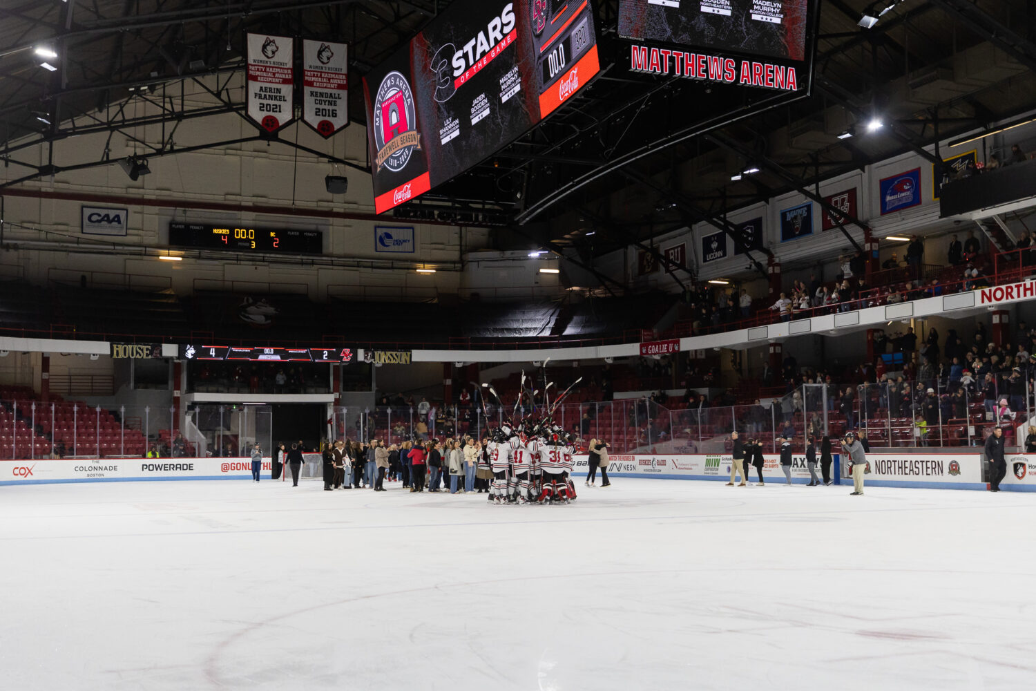 NEWS For its entire 48-year history, Northeastern women’s hockey called Matthews Arena home. The time has finally come to say goodbye Women’s Hockey For its entire 48-year history, Northeastern women’s hockey called Matthews Arena home. The time has finally come to say goodbyeby Daisy RobertsFebruary 4, 2026 Women’s Basketball McGurk and Baker shine as Dragons extinguish Huskies at Cabotby Jordan WalshFebruary 1, 2026 Men’s Basketball Kermoury’s career-high not enough as Charleston escapes with 89-84 winby Madison FerreiraJanuary 31, 2026 Men’s Hockey “It’s not a great feeling”: Huskies’ Beanpot dreams come crashing down in shootout loss to BUby Jacob PhillipsFebruary 3, 2026 Men’s Soccer Red card, missed chances doom Northeastern in loss to Stony Brookby Siera QosajNovember 1, 2025 FEATURED For its entire 48-year history, Northeastern women’s hockey called Matthews Arena home. The time has finally come to say goodbye Women’s Hockey For its entire 48-year history, Northeastern women’s hockey called Matthews Arena home. The time has finally come to say goodbyeby Daisy RobertsFebruary 4, 2026 ‘Mr. Northeastern’: The 44-Year-Career that Brought Jim Madigan to the Forefront of the University’s Evolution Men’s Hockey ‘Mr. Northeastern’: The 44-Year-Career that Brought Jim Madigan to the Forefront of the University’s Evolutionby Luke GrahamJanuary 28, 2026 PODCASTS The Northeastern Hockey Show Hockey East This Week Paws in the Paint Follow @x Tweets by wrbbsports