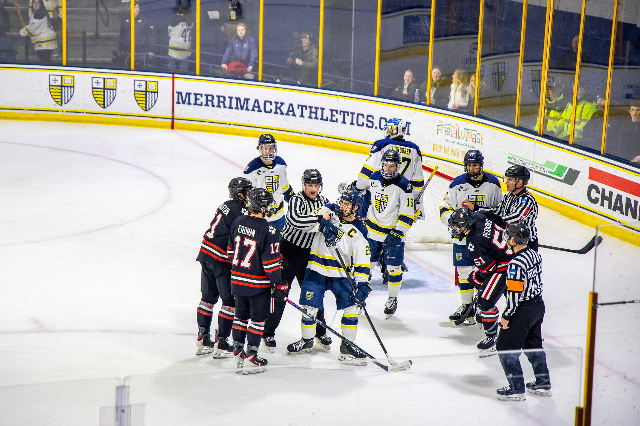 But after a set of away bouts in North Andover, that progress in the Hockey East standings was effectively negated, as they lost two of two against the Merrimack Warriors. Friday night was somewhat of a more competitive effort than Thursday, but the 3-1 loss sent the Huskies back to Boston deflated, searching for their offensive identity.