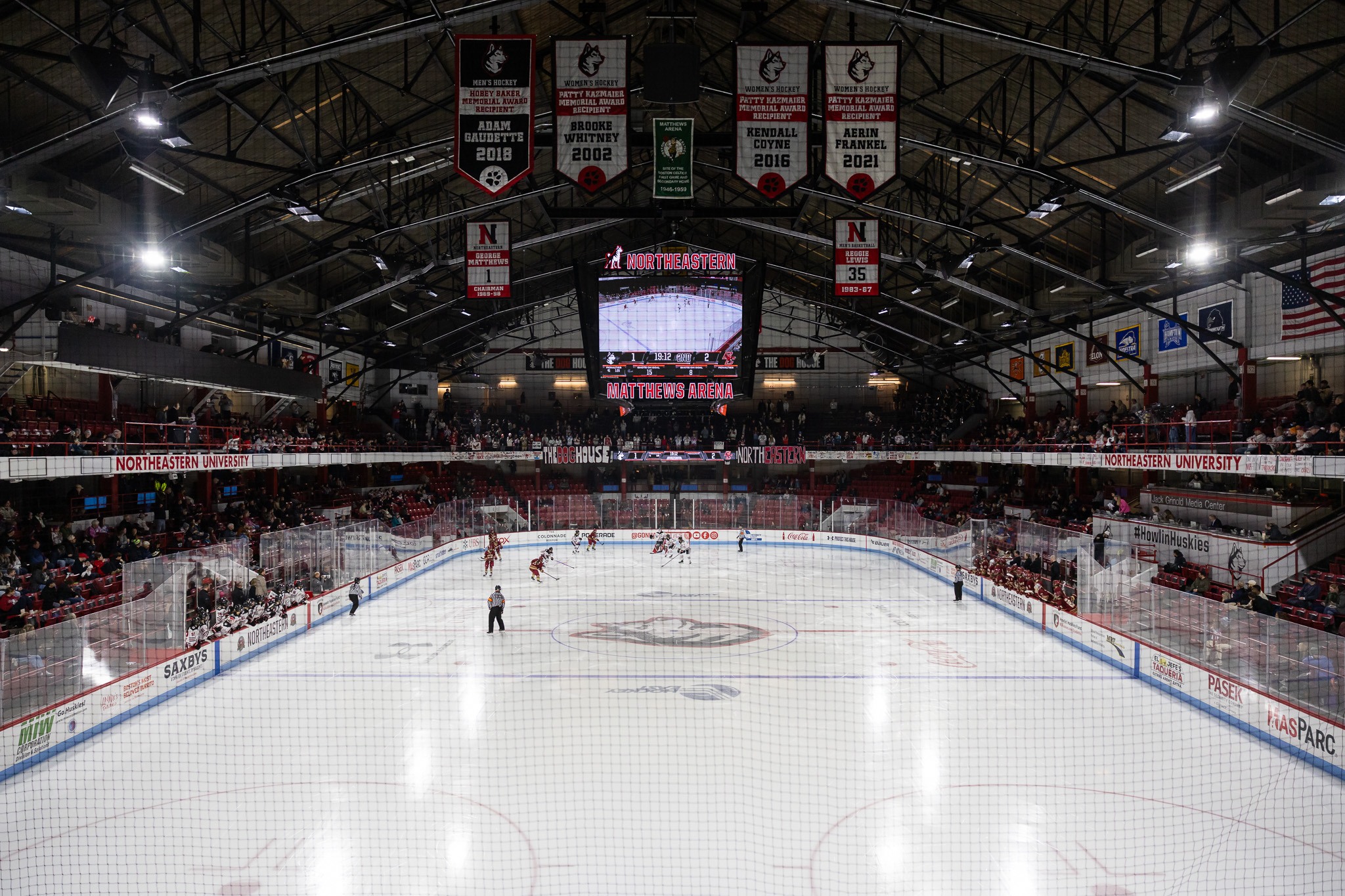 “[Matthews] is a special place that has a significant meaning to a lot of people,” said Northeastern head coach Dave Flint. “I remember my first day on the job. The old manager of the rink, he called me… This was summertime, so there was no ice, and he goes, ‘Meet me at center ice.’ He introduced himself and he gave me a Reader’s Digest version of how special the arena was and how much history was there, so I knew day one on the job.”