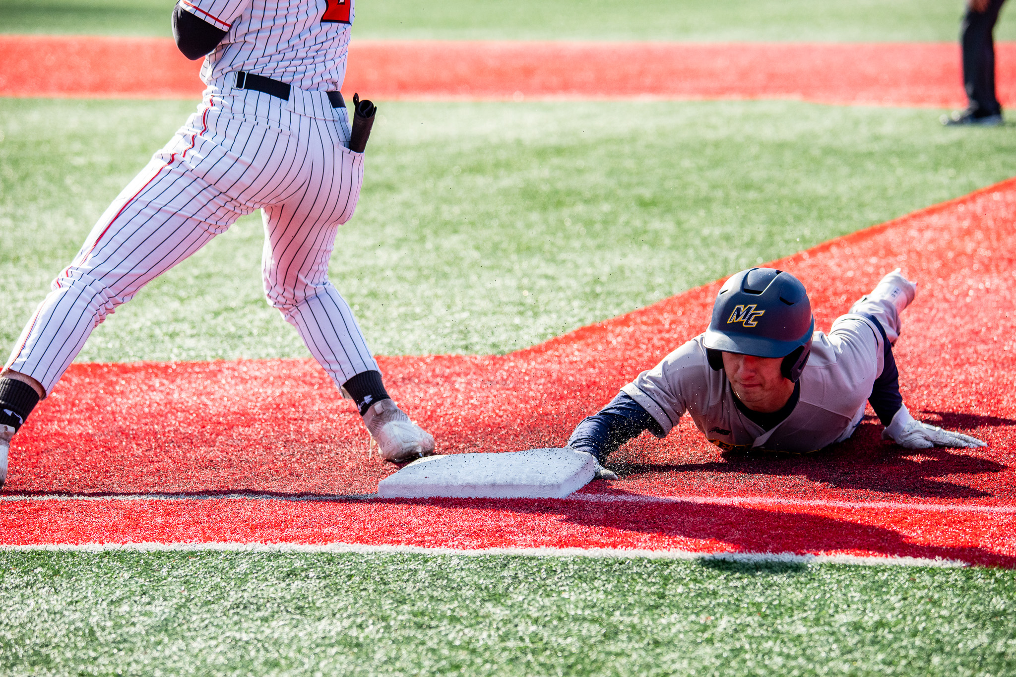 Heading into the ninth with a 3–2 lead, Glavine called on graduate student flamethrower Andrew Wertz to try to close out the game. Wertz retired the first two Warriors with ease, but down to the final strike, sophomore Matt DeShiro knocked through a single. Then, Andrews reached on a Carmelo Musacchia throwing error, making it two aboard and putting DeShiro in scoring position. Again in a two-strike count, Frammartino, the team leader in batting average (.370) and OPS (1.113), came in clutch, depositing a go-ahead double to the right center field gap to give Merrimack the lead.